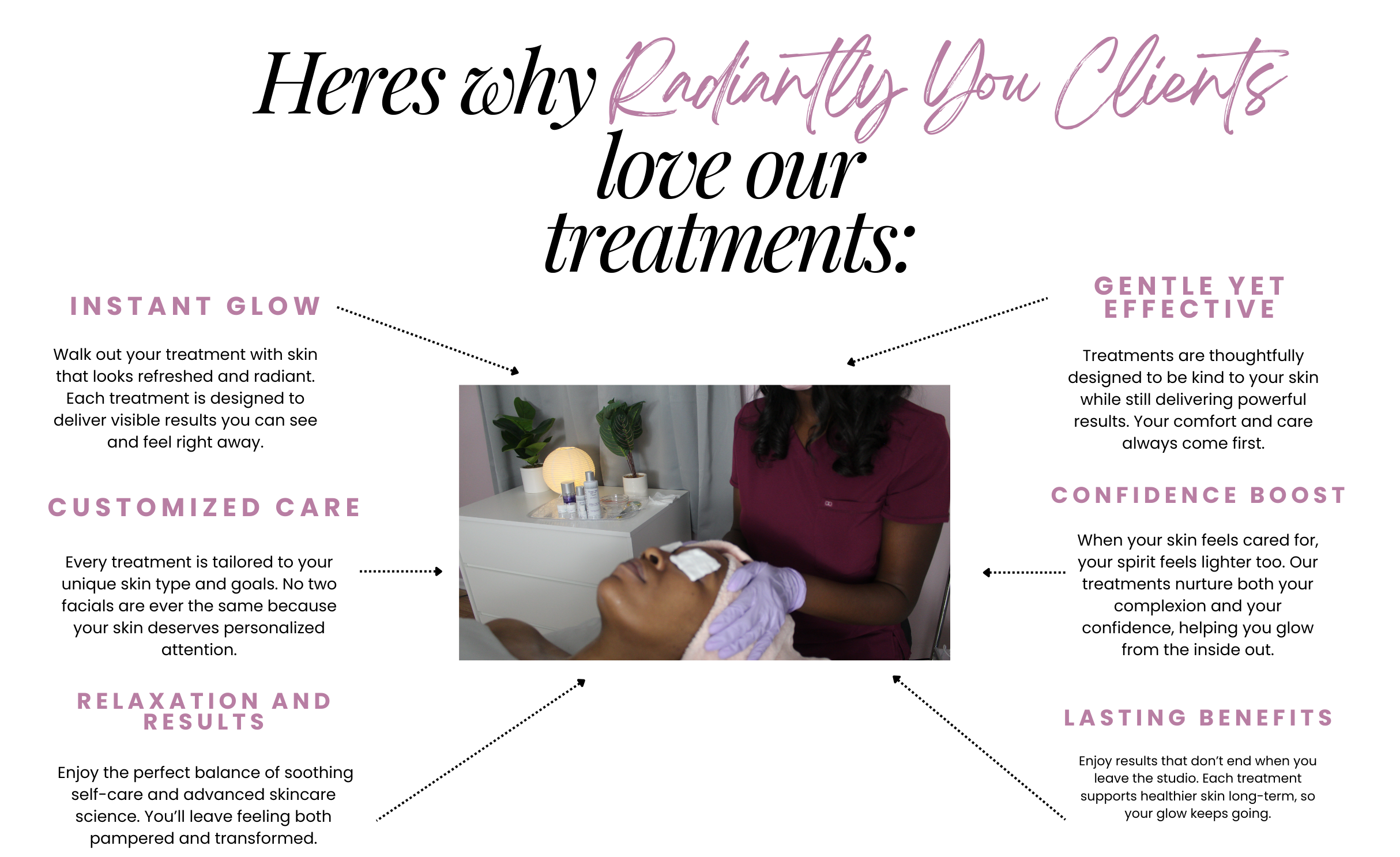 At Radiantly You Aesthetics, we believe in timeless beauty and radiant confidence. Our luxury facials and advanced skincare treatments are designed to rejuvenate, restore, and reveal your natural glow. Each service blends relaxation with results, ensuring every visit leaves your skin luminous and your spirit refreshed.