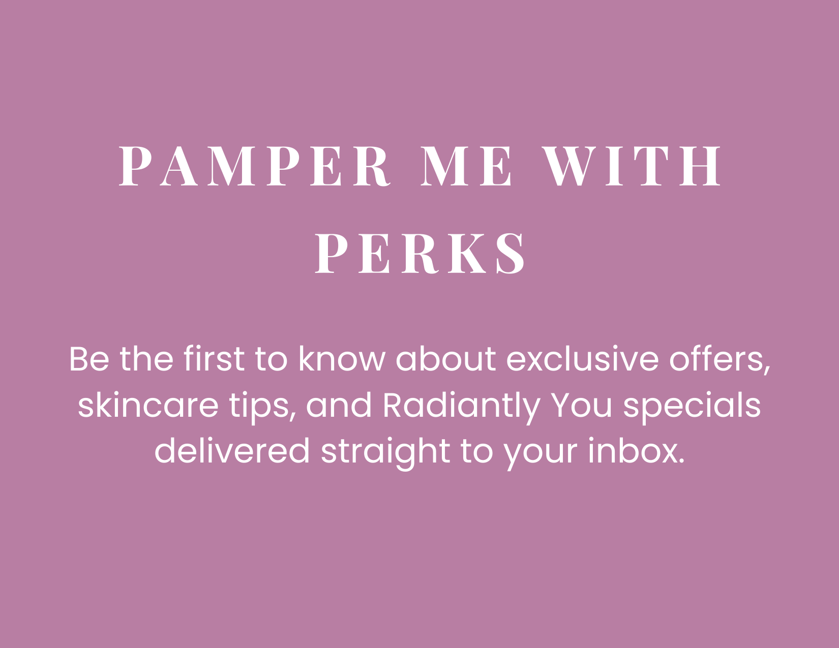 Stay up-to-date with new releases and special offers by signing up for the Radiantly You Mailing List